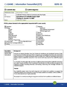 • For questions about procurement, contact Procurements@CalSAWS.org.